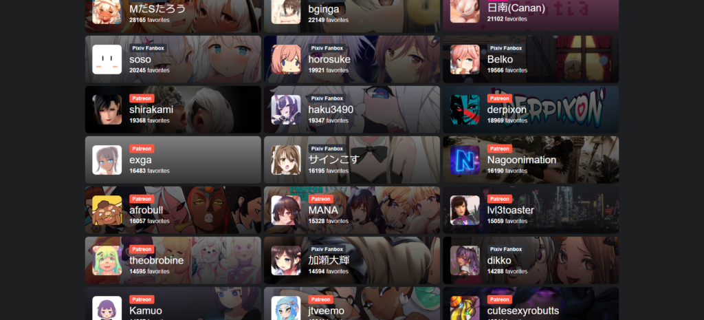 Kemono.Partyには、様々なサイトの有料コンテンツがアップロードされています。